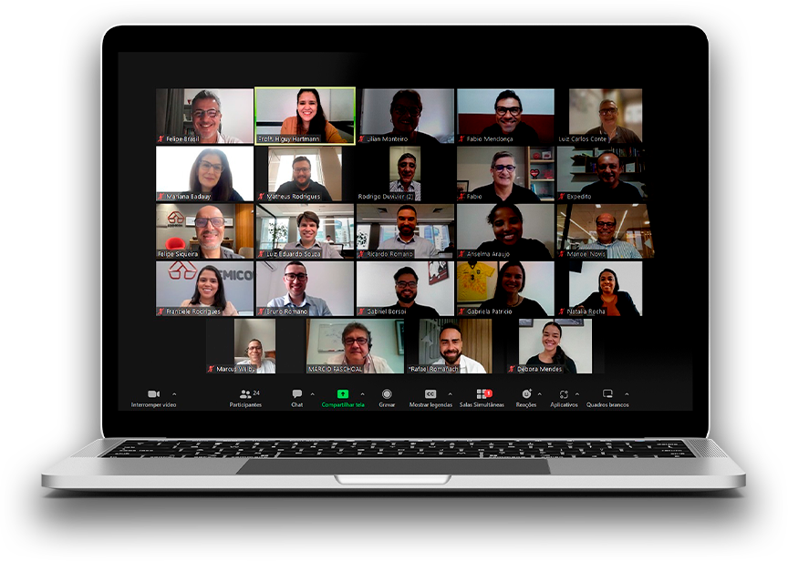 As aulas de oratória em grupo online são ministradas pela plataforma Zoom.